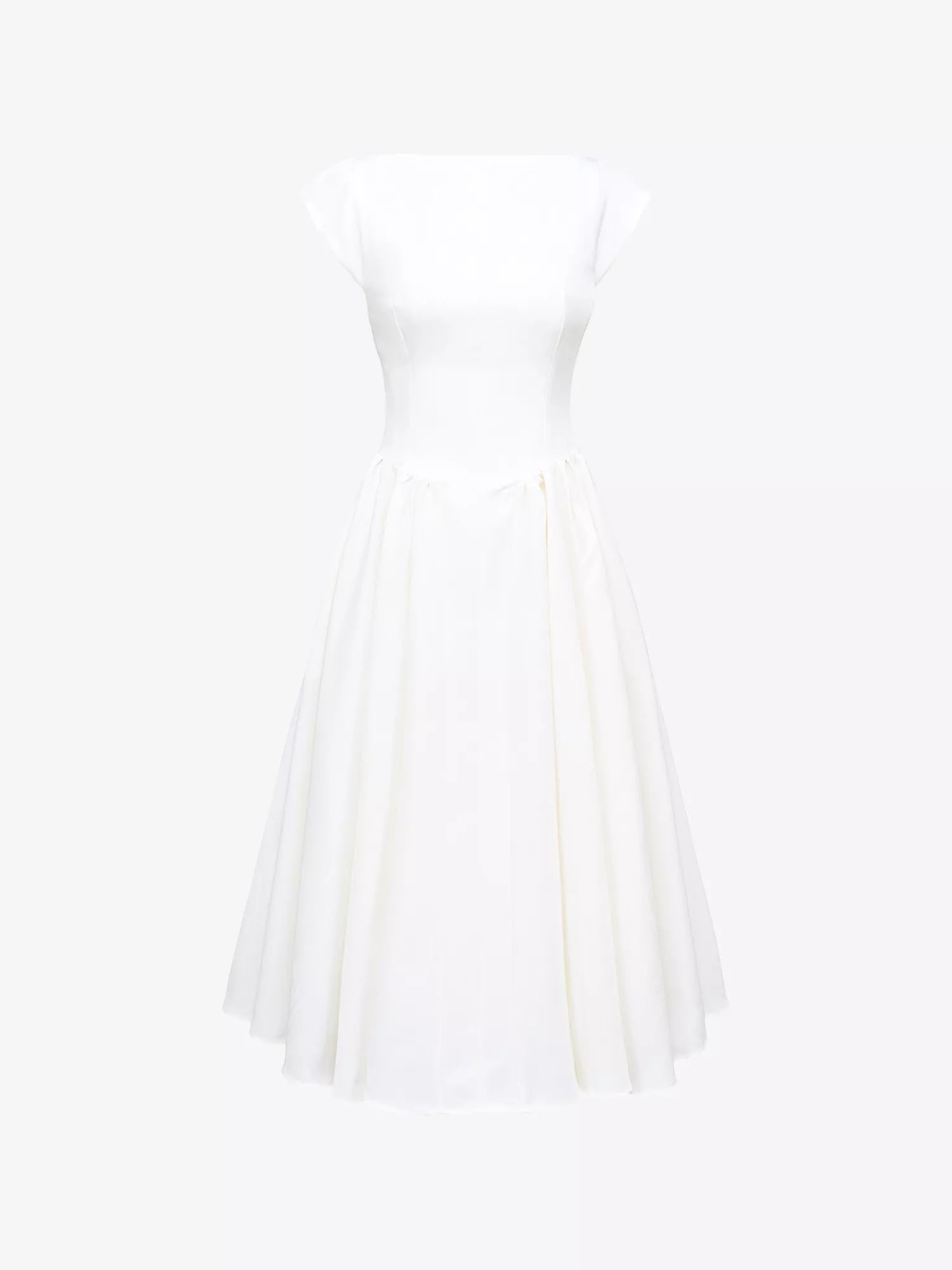 Talki ist eine atemberaubende Wahl für besondere Momente, die Anmut und Eleganz erfordern. Gefertigt aus besonders edlem Moiré-Satin verkörpert dieses Midi-Kleid mit weitem Rock die Eleganz einer modernen Prinzessin.